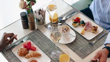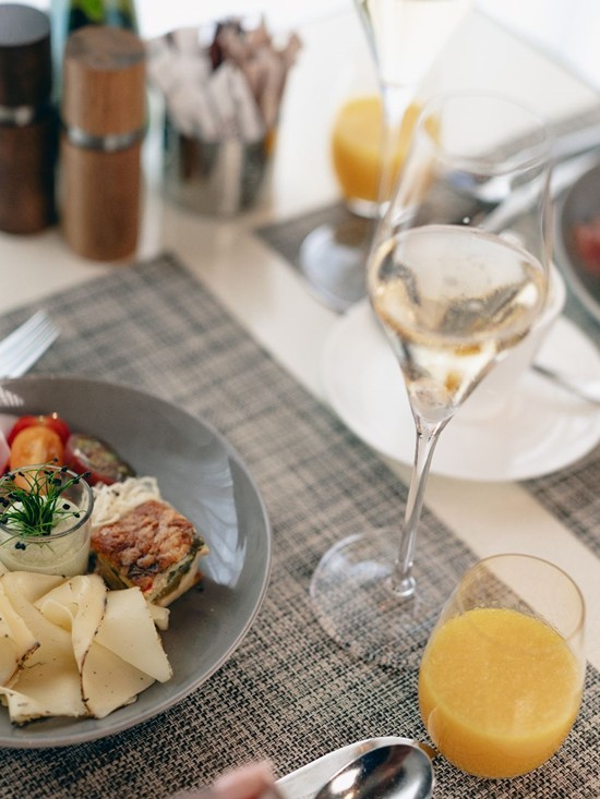 Bright, calm and inviting – the restaurant sets the tone. Breakfast is presented like a painting: beautifully arranged and full of flavour. Sweet and savoury delights in impressive variety await at the buffet. Viennese coffee specialities, Sans Souci classics, daily dishes, and freshly prepared egg dishes are served at the table. The perfect finishing touch: a glass of crisp, sparkling champagne included.