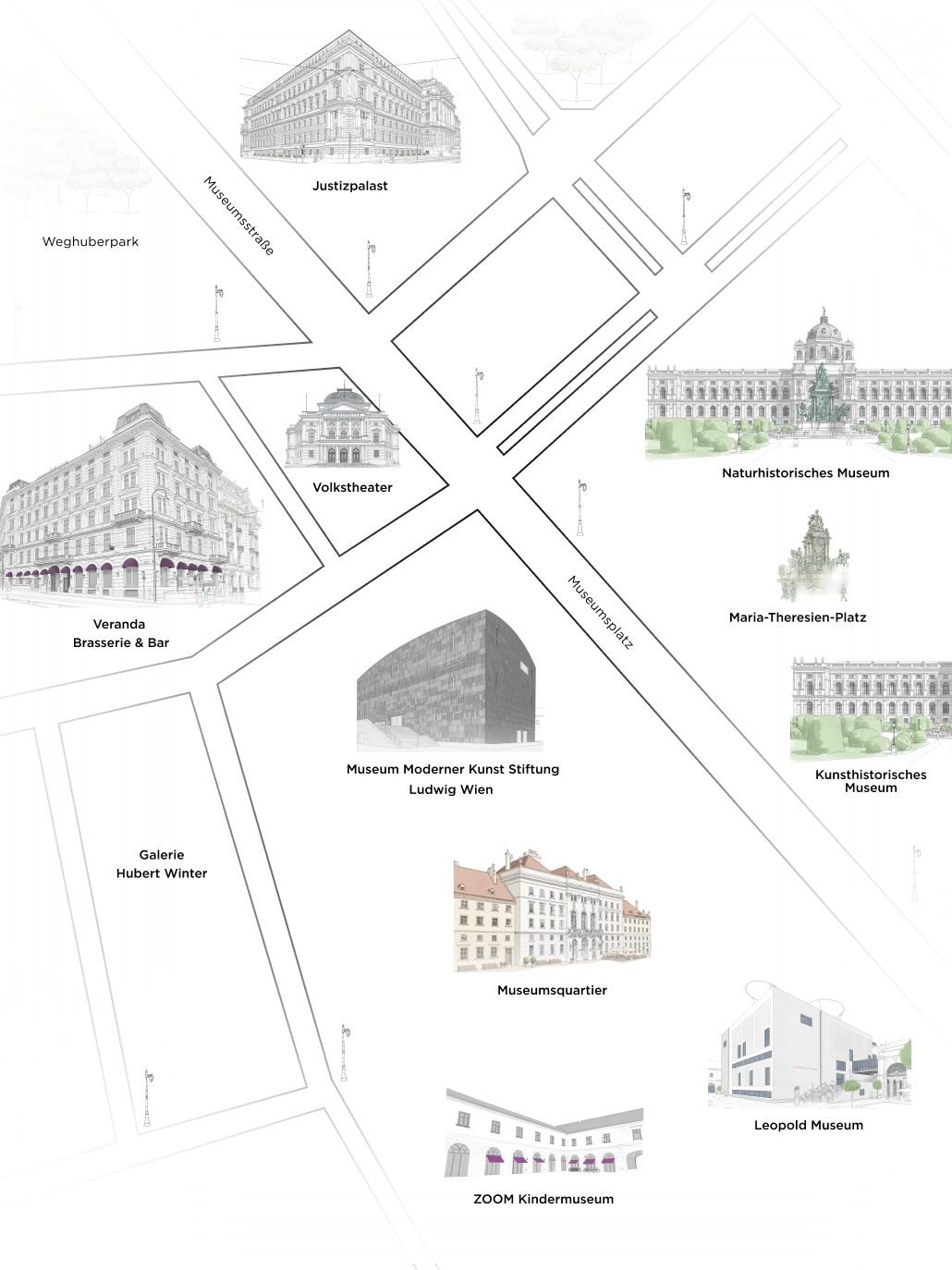 Whether for a spontaneous evening or a planned reservation – we are happy to welcome you. Our Veranda Brasserie & Bar is centrally located and easily accessible on foot or via the U2/U3 Volkstheater station.