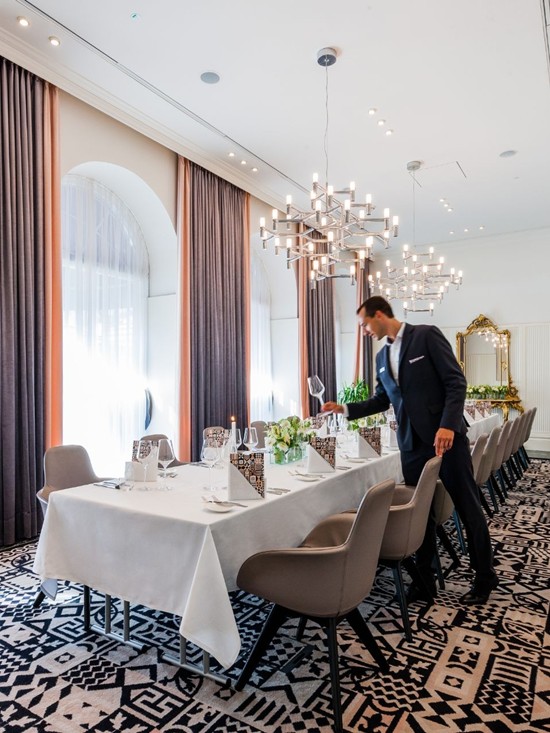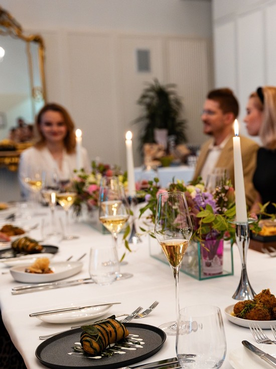 Whether an intimate dinner, a birthday celebration, a wedding reception, or a cocktail reception – our 60 m² Le Salon offers a stylish choice for festive occasions. The space can be seamlessly extended with access to the outdoor Laurent-Perrier Lounge.